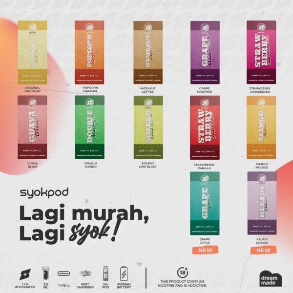 The Syokpod Close Pod 2.2 ml Prefilled Cartridge offers the perfect balance of flavor, convenience, and satisfaction. Whether you’re a beginner looking for a simple option or an experienced vaper who enjoys exploring new blends, Syokpod provides a wide range of carefully crafted flavors to suit every preference. From fruity refreshment and indulgent desserts to bold coffee and unique local-inspired blends, Syokpod ensures that every puff is smooth, enjoyable, and reliable.
